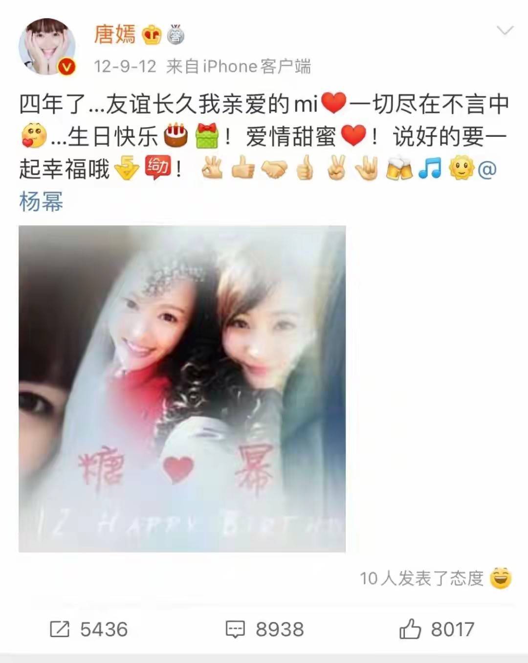 这句话的出现也不禁让人想起了她过去和杨幂的友谊。